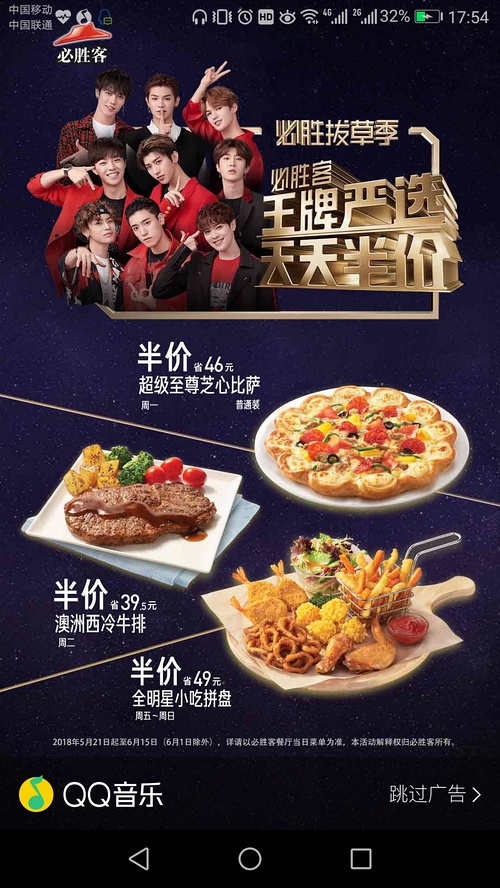 QQ音樂開屏廣告展示位置:app啟動時展示
