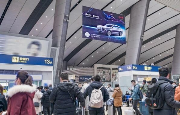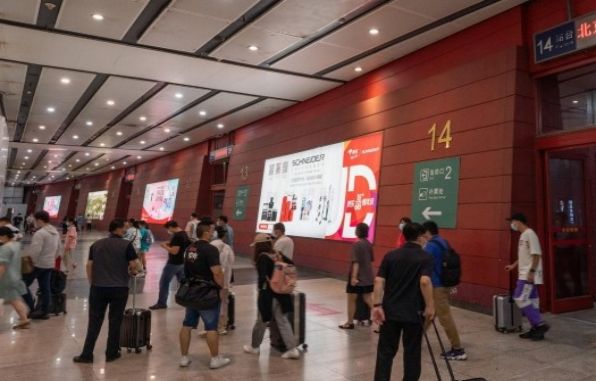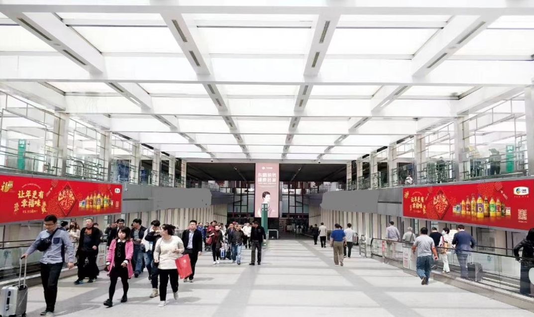 北京南站候車大廳檢票口墻貼+防撞條廣告
