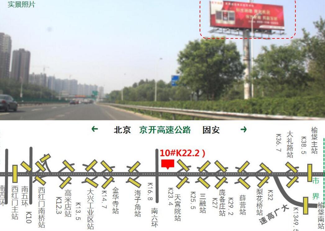 媒體位于進京方向22.2,天宮院橋東北匝道,視覺沖擊力強,無意識展望率高,廣告傳播廣,能迅速傳達廣告信息,是提升企業形象和經濟實力的突出廣告位。