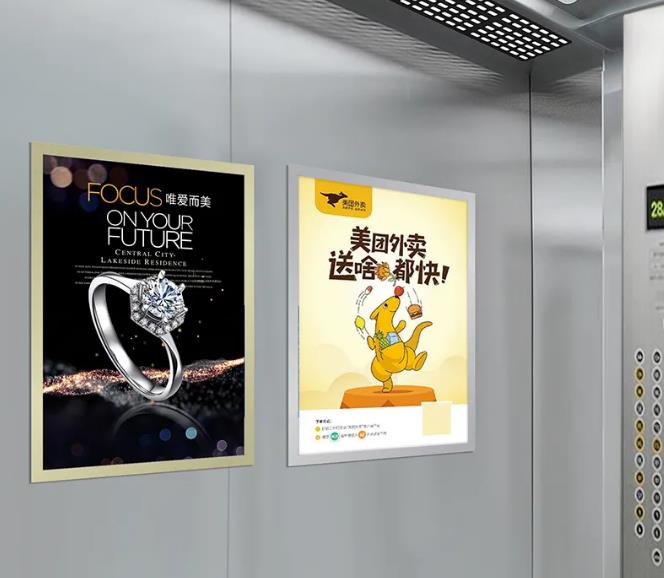 電梯框架廣告是指電梯轎廂內的廣告框,一般用來安裝廣告海報,起到廣告作用。電梯廣告框架是生活中最常見的電梯廣告類型,也最為普遍的類型,通常在商場、小區電梯內是常常可以看見的一種廣告方式。在投放此類廣告商一定要在海報設計上富有創意,采用多圖少字的設計,信息量充足,這樣才能達到傳播的效果。