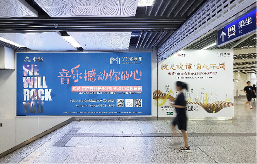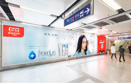 | 創(chuàng)意媒體-南京地鐵新街口站20號品牌通道廣告 線路:1、2號線 組合形式:100㎡頂天立地墻貼 媒體費(元/52周):350,000 制作方式:寫真噴繪 制作費(元/次):30,000 |