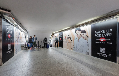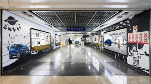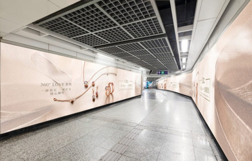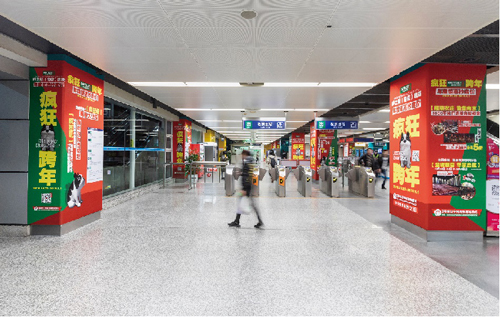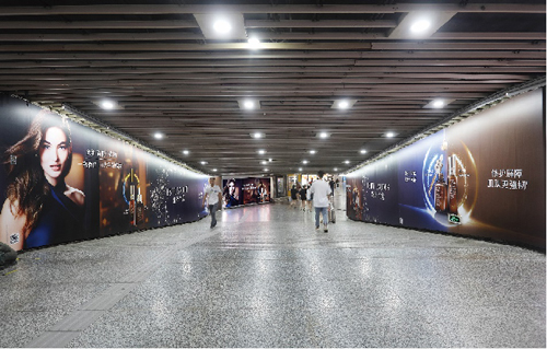 | 創(chuàng)意媒體-南京地鐵新街口站8號品牌通道廣告 線路:1、2號線 組合形式:73.34㎡ 墻貼 媒體費(元/52周):600,000 制作方式:UV寫真燈布 制作費(元/次):22,002 |