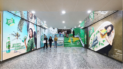 | 創(chuàng)意媒體-南京地鐵集慶門大街站1號品牌通道廣告 線路:2號線 組合形式:1號通道:約196.08㎡墻貼 媒體費(元/52周):400,000 制作方式:寫真噴繪 制作費(元/次):58,824 |