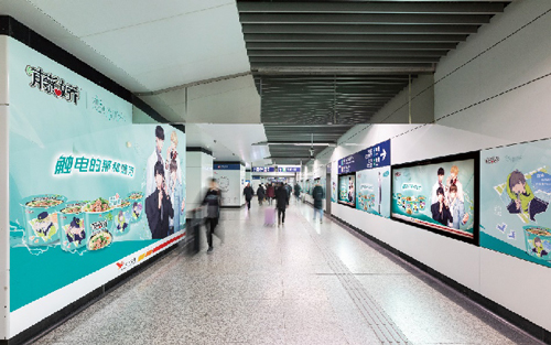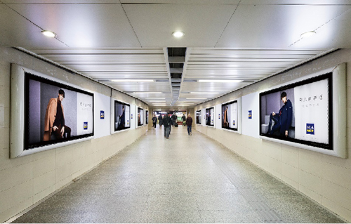 | 創(chuàng)意媒體-南京地鐵集慶門大街站品牌長廊廣告 線路:2號線 組合形式:7塊12封燈箱+約38.14㎡墻貼 媒體費(元/52周):450,000 制作方式:UV寫真燈片+寫真噴繪 制作費(元/次):18,440 |
