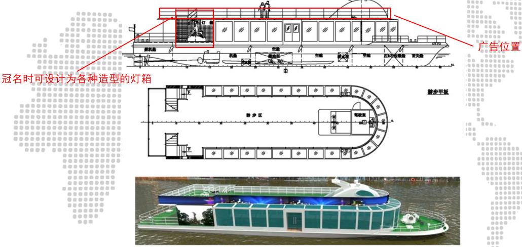 合作形式為:船體廣告 +游船內部廣告位