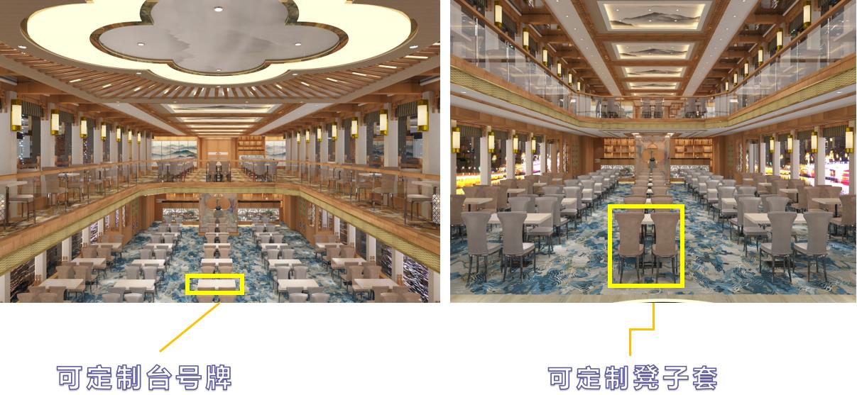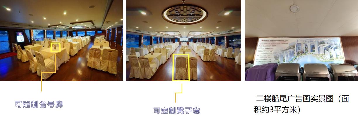 游船內部廣告位:圓桌式坐席區分布1個橫版廣告展示位