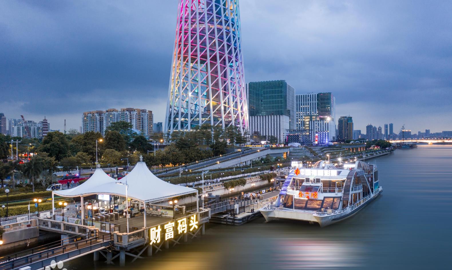 廣州塔財富碼頭(曾用名:廣州塔游船碼頭)緣起于2017年廣州《財富》全球論壇,地處廣州塔東北側珠江沿岸,與廣州新中軸線隔江相望。