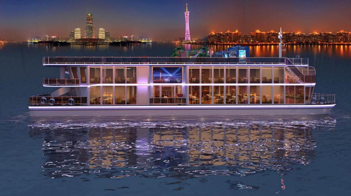 由西歐羅馬廊柱、嶺南窗花柵格、現代玻璃幕墻等跨越時空地域的設計元素組成的豪華游船,載客量位列所有珠江游船榜首。