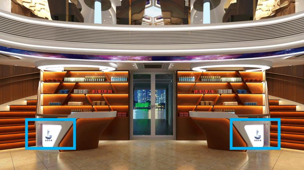 游船內部廣告位:坐席區兩側分布2個豎版廣告展示位