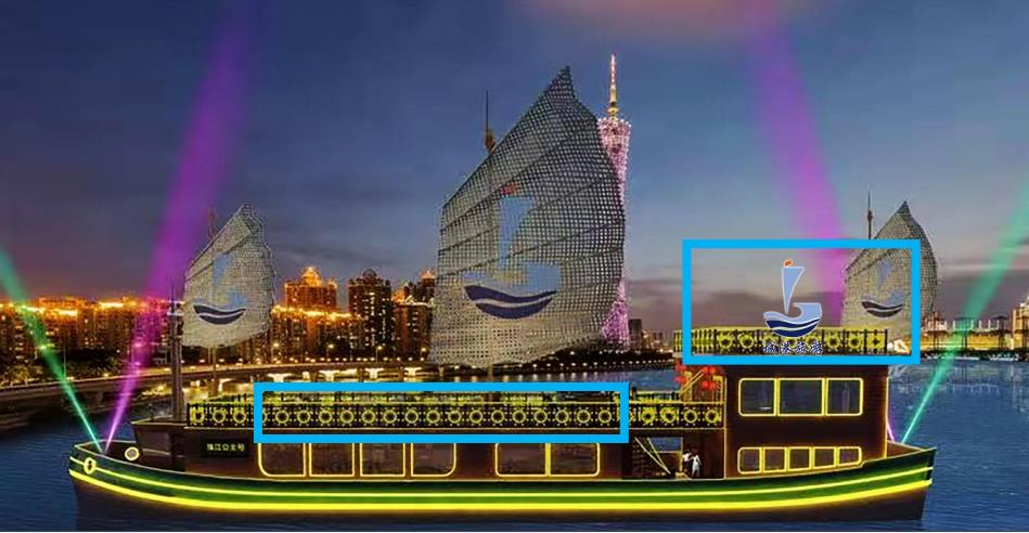 船體廣告多采用燈箱或者LED燈的形式,顯示在游船側面的醒目位置。