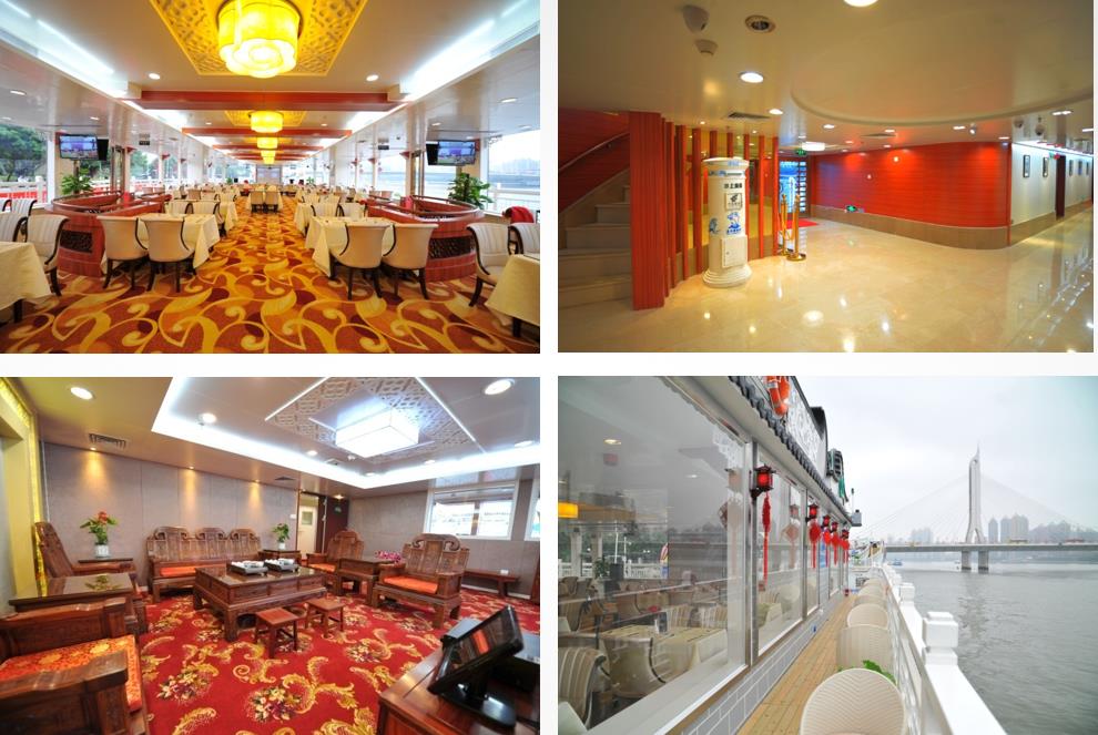 花城明珠號是250客位三層豪華游船,該船整體以中式建筑設計風格為主,裝飾具有濃厚的廣州西關風情。二樓提供豪華西式套餐。三樓露臺空間大視野開闊,讓您無論身在何處,目所能及之處都是美麗的江景。