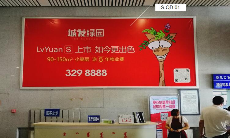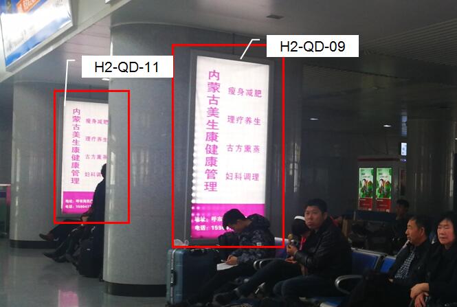 | 呼和浩特高鐵站燈箱 媒體位置:二樓東候車(chē)室 媒體類(lèi)型:包柱燈箱 最小售賣(mài)單位:2 媒體數(shù)量:2 廣告尺寸(m)寬*高:2.65*4.18*2面 廣告面積(㎡)=22.15 刊例價(jià)(萬(wàn)元/月)8-10/組 |