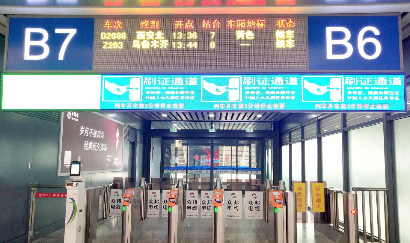 蘭州西客站候車室進站閘口感應門廣告