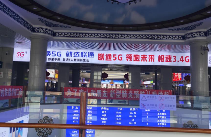 媒體位置:通遼站北進站二樓大廳閘機上方橫梁燈箱