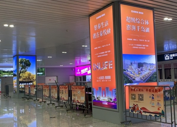 千島湖站出站廳檢票口落地雙面燈箱廣告