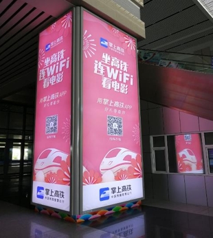 長春西站-進站大廳扶梯旁立柱燈箱廣告