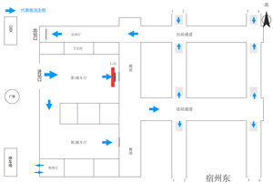 截至2017年9月,宿州東站場規模為2臺6線;站房建筑面積為3萬平方米。