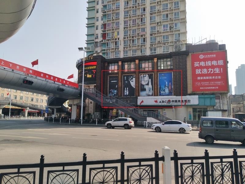 老河口中心城區(qū)武商購(gòu)物廣場(chǎng)旁,廣告位正處于交叉口位置,人流車流匯集地段。