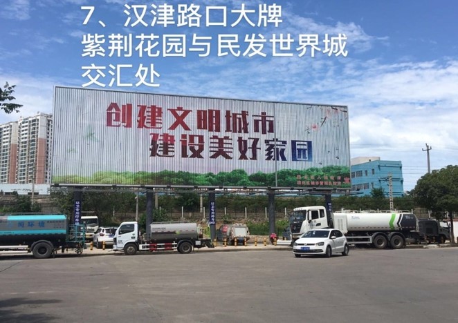 媒體位置:漢津路 紫荊花園與民發(fā)世界城交匯T形路口