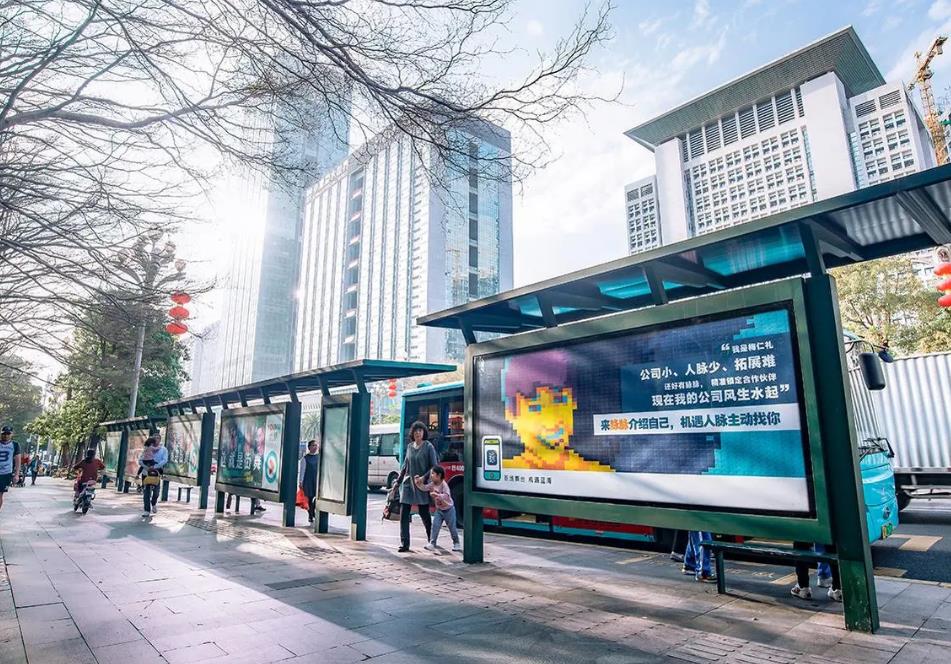 也稱(chēng)公交車(chē)站臺(tái)燈箱廣告。矗立于人流中轉(zhuǎn)站的候車(chē)亭廣告,能使人在等待中感受一種視覺(jué)上的愉悅,集觀賞性、細(xì)讀性于一體,其廣告效果獨(dú)領(lǐng)風(fēng)騷。