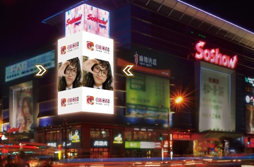 超大環形巨幕傳播無死角、零距離觀看超強視覺沖擊、頂級商圈最繁華十字路口