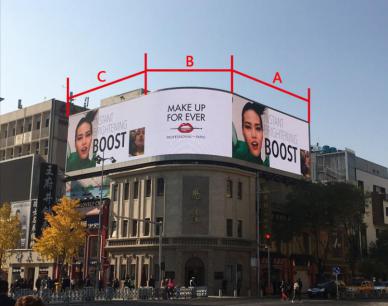 播放時間:9:00 - 22:00;媒體規格:28.16米(寬) x 11.52米(高)=324平方米