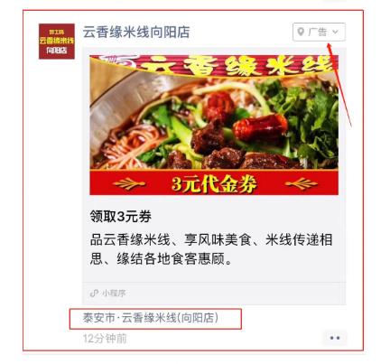 朋友圈圖文廣告由五或六個(gè)部分的內(nèi)容構(gòu)成,包含廣告主頭像&名稱、外層文案、外層圖片、文字鏈、用戶社交互動(dòng)等, 本地推廣圖文廣告還包括門店標(biāo)。