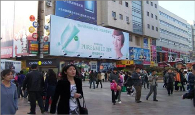 青島臺東三路步行街當代商城墻體南側大牌廣告