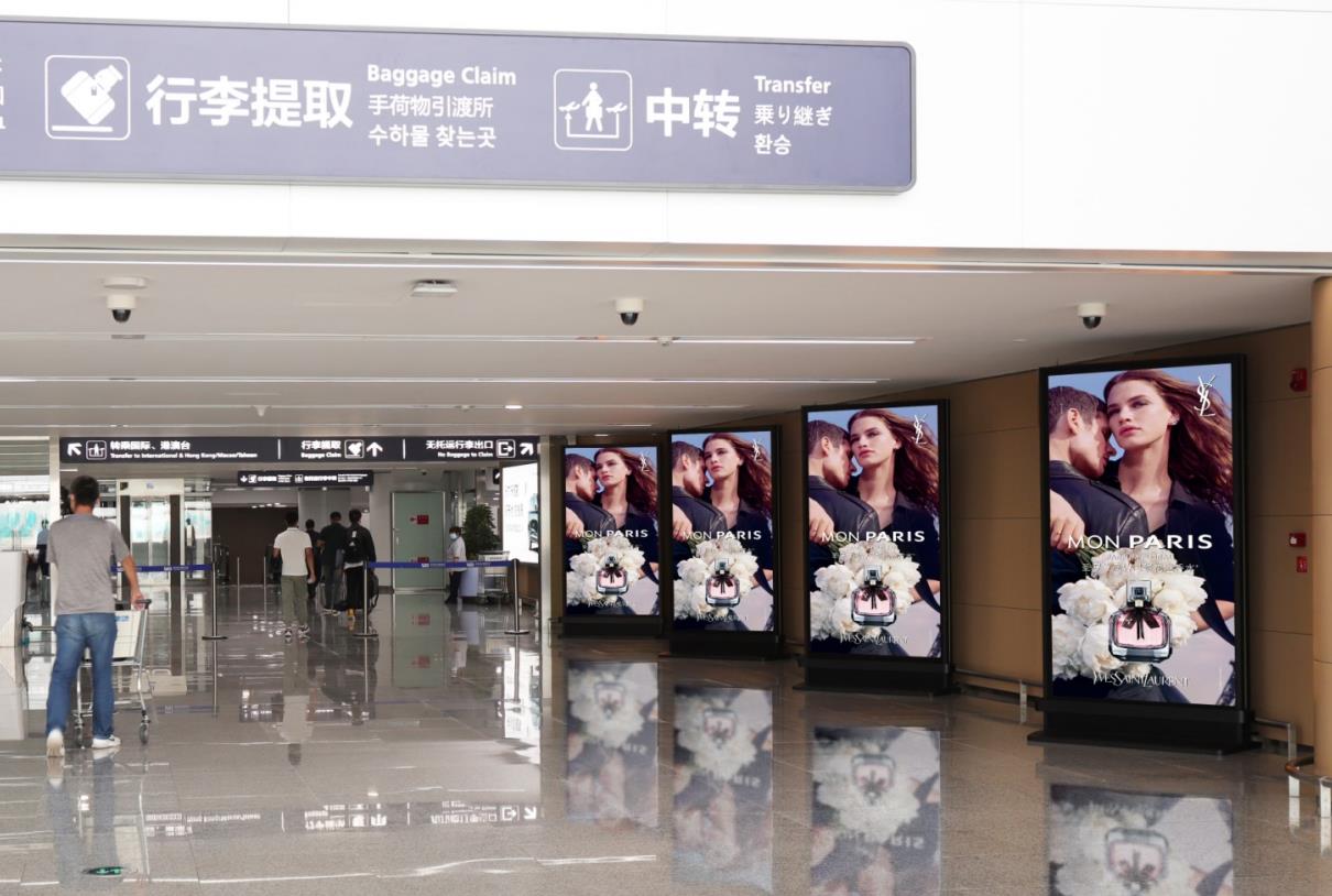 青島膠東機(jī)場(chǎng)廣告-2F國(guó)內(nèi)到達(dá)匯集通廊電子刷屏廣告