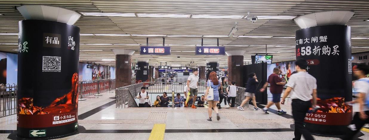 媒體優(yōu)勢(shì)與運(yùn)用: 王府井站是最優(yōu)質(zhì)的站點(diǎn)之一,乘客多為來(lái)自全國(guó)各地的商旅人群,白領(lǐng),公務(wù)員。8根包柱分布在整個(gè)站廳,可以有效覆蓋站廳客流。
