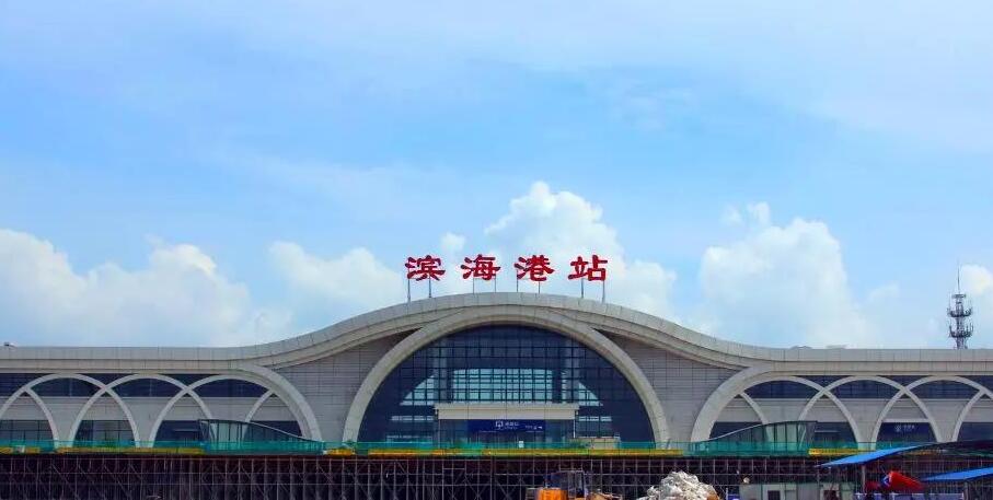 濱海港站是國家“八縱八橫鐵路網(wǎng)”沿海鐵路中青鹽鐵路的一個(gè)中間站,位于江蘇省濱??h東坎街道醫(yī)藥產(chǎn)業(yè)園附近,距縣城4.5公里,所處里程為青鹽線353km664m。青鹽鐵路濱海港站站房分為候車大廳、出站廳和售票廳,左右兩側(cè)為設(shè)備辦公用房,中部為單層候車大廳,建筑面積10061平方米,建筑總高度16.57米,站臺(tái)全長550米,總投資1.6億元。站房前是一個(gè)帶公園式的站前廣場,功能齊備,將充分滿足市民日常的出行。車站設(shè)計(jì)旅客日均發(fā)送量為2000人次,遠(yuǎn)景規(guī)劃為10000人次,為中型鐵路客站。