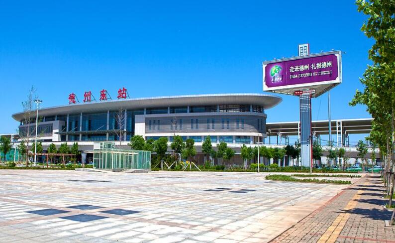 德州東站,位于素有“九達(dá)天衢”“神京門戶”之稱的山東省德州市,中國(guó)高速鐵路客運(yùn)網(wǎng)“四縱四橫”中的一縱一橫——京滬高速鐵路和青太客運(yùn)專線交會(huì)于此,在京滬高速鐵路上北距北京南站314公里,南距上海虹橋站1004公里,在青太客運(yùn)專線上西距太原南站437公里,東距青島站506公里。