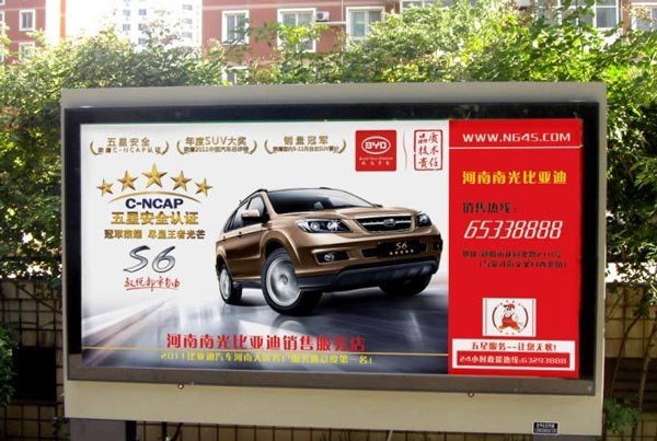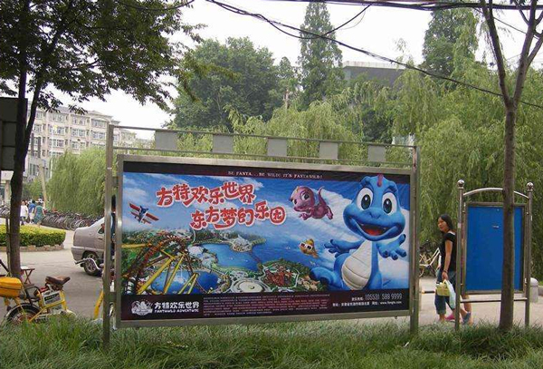 這種簡易的廣告牌,不帶燈光,成本低,主要的受眾時間是在白天,視覺沖擊力不強。