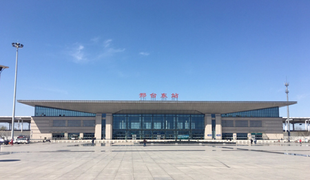 邢臺東站西鄰京港澳高速邢臺北路口,站前振興一路呈北向南,與邢州大道、泉北大街、中興大街相連,面向正東方,站前廣場開闊,站房設計舒展大氣,猶如一只展翅欲飛的雄鷹,充滿活力感和時代氣息,寄托著邢臺市飛躍發展的希望。