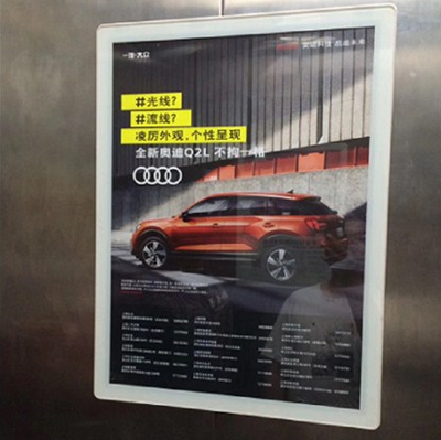 電梯平面媒體是設置于電梯轎廂、候梯間內的平面鏡框,她具有零干擾、可平視、親和力強的特點,充分利用受眾乘(候)梯的“途中時間”,填補電視、報刊等傳統媒體的空白,因有效閱讀而保證極高的廣告到達率。