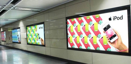 位于地鐵通道中或地鐵出口的燈箱媒體,經常一排2個或3個燈箱