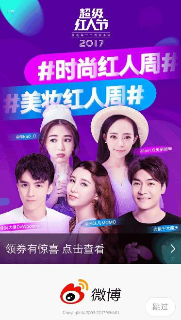 微博是目前最流行、最活躍的社交網絡,是內容媒體平臺之一,擁有龐大的用戶基礎。在這樣一個流量巨大的平臺上,品牌進行各種營銷和推廣是正常的,所以當我們追逐明星時,我們總能看到明星偶像發布的代言廣告;當我們追逐時事熱點時,總會有相關的摩擦熱點廣告;進入微博有開屏貼片廣告,隨機刷新也看到信息流廣告。文字、圖片、視頻、各種豐富多彩的廣告都充滿了微博,以不同的形式占據了我們的注意力。