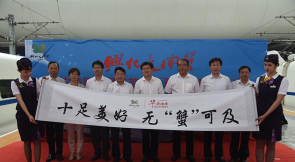 “興化大閘蟹”滬寧線高鐵列車冠名廣告首發(fā)暨開捕季啟動儀式在上海虹橋高鐵站舉行。