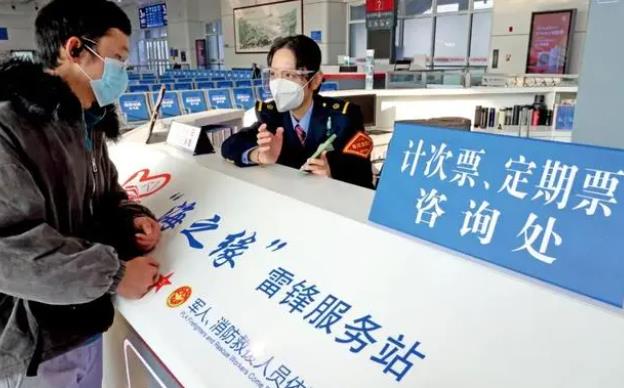 2022年11月16日,江蘇連云港,旅客向工作人員咨詢計(jì)次票、定期票使用方法。圖/視覺中國